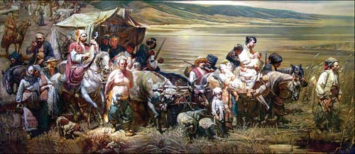 «Переселення запорозьких козак╕в на Кубань» — картина художника ╕з Краснодара Геннад╕я Квашури. В╕н народився 1950 року в станиц╕ Пашк╕вська у родовит╕й козач╕й с╕м’╖. У 2006 р. президент В. Ющенко присво╖в йому звання заслужений прац╕вник культури Укра╖ни.