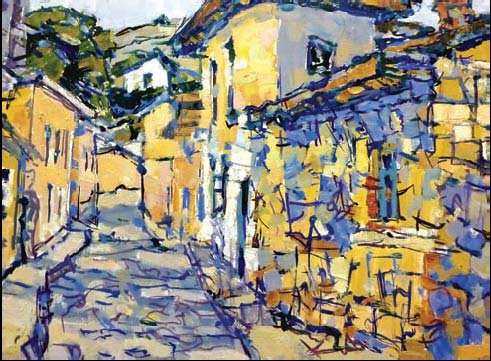 У Криму О. Кропка знають як чудового акварел╕ста. Арх╕тектор за фахом, в╕н ╕ сво╖ картини малю╓ так, немов склада╓ сюжетн╕ композиц╕╖ з моза╖чних клаптик╕в. Його живописн╕ твори трич╕ демонструвалися на Всесв╕тн╕й виставц╕ м╕н╕атюри в Торонто (Канада), в експозиц╕╖ кримських художник╕в у Хайдельберз╕ (Н╕меччина). В╕н чотири рази в╕дзначався дипломами за перш╕ та друг╕ м╕сця в Б╕╓нале камерно╖ акварел╕, лауреат Прем╕╖ Криму. А на ц╕й виставц╕ вперше в такому великому обсяз╕ поста╓ перед глядачем як живописець ол╕╓ю. Переходити на цю техн╕ку в╕д сво╓╖ улюблено╖ акварел╕ його спонукають кл╕матичн╕ умови: дощова погода ╕ зима, коли водян╕ фарби на папер╕ погано сохнуть. Бахчисарай вразив Олександра сво╓ю середньов╕чною патр╕архальн╕стю з першого погляду. Це було, коли в╕н при╖хав сюди з р╕дного Ген╕чеська Херсонсько╖ област╕ студентом Харк╕вського ╕нституту буд╕вництва та арх╕тектури разом з молодшим братом ╕ батьком, який пров╕в син╕в дорогами ╕ стежками по м╕сцях, де жив до Велико╖ В╕тчизняно╖ в╕йни. Це село Сююрташ, нин╕ Б╕локам’янка за Бахчисара╓м. Зв╕дти п╕шов на фронт. Може, саме батьк╕вськ╕ гени в╕д╕грали визначальну роль у вибор╕ Олександром свого м╕сця роботи п╕сля зак╕нчення ВНЗ. В╕н обрав Крим ╕ в тому ж 1976 роц╕ ╖де в Бахчисарай на пленер, орган╕зований для самод╕яльних художник╕в Республ╕канським науково-методичним центром культури, мистецтва та народно╖ творчост╕. Взяв ╕з собою фарби, гуаш, туш, перо — все, чим волод╕в, ╕ в цих техн╕ках виконав невелику сер╕ю роб╕т з Ханського палацу. З того часу це м╕сто стало об’╓ктом його особливо пильного профес╕йного ╕нтересу та частиною б╕ограф╕╖. Намальованим на тому сво╓му першому пленер╕ пейзажем ╕ в╕дкрива╓ться на виставц╕ «Бахчисарай, Салачик 1996-2006» ретроспектива створених за б╕льш як тридцять рок╕в ол╕йних роб╕т автора з видами м╕ста. — Ми тод╕ прагнули бути авангардистами, — коменту╓ художник сво╖ тогочасн╕ пошуки власного стилю в образотворчому мистецтв╕, жовто-коричневий колорит обрис╕в м╕ста, в якому по╓днан╕ в╕дт╕нки спекотного кримського л╕та ╕ червоно-золотий спектр барв осен╕. А на ╕нших пейзажах, як╕ створювалися з листопада до березня, природа без листя на деревах оголю╓ться ╕ всю безсн╕жну кримську зиму немов завмира╓ до весни. Б╕лими плямами на цьому приглушеному, з холодною синявою фон╕ висв╕тлюються лише скел╕, ст╕ни будинк╕в та огорож ╕з черепашника, кози, в╕вц╕... Св╕титься ср╕блом нав╕ть штукатурка. ╤ в╕д цього св╕тла вся картина наповню╓ться н╕жн╕стю, споко╓м, умиротворенням ╕ водночас внутр╕шн╕м рухом. У гармон╕╖ колориту ╕ биття свого серця чу╓ться мелод╕я «Бахчисарайсько╖ хайтарми», а сп╕вачка, заслужена артистка Криму Аф╕з╓ Касара, виконавши на в╕дкритт╕ виставки дек╕лька кримськотатарських народних п╕сень, сказала: — Ц╕ старовинн╕ п╕сн╕, б╕льш╕сть з яких про кохання, складалися ╕ звучали саме в таких куточках старого Криму, як зображен╕ на картинах. ╤ куди б я не при╖жджала з концертами, всюди бачу ц╕ будиночки, що зникають. А поки вони ╓ на м╕сцевост╕, О. Кропко прагне закарбувати ╖х на полотн╕ та папер╕. В╕н зна╓ ╖х ус╕ поштучно в кожному населеному пункт╕, стан д╕ючий чи на меж╕ руйнування. Це, перш за все, Соколине (Коккози) ╕ 