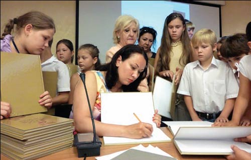 На зустр╕ч╕ з кримськими д╕тьми, ╖хн╕ми батьками та педагогами в Республ╕канськ╕й ун╕версальн╕й науков╕й б╕бл╕отец╕ ╕м. ╤. Франка минуло╖ п’ятниц╕ Натал╕я Ларк╕н розпов╕ла, що ╕дея написати цю книгу в не╖ виникла саме в С╕мферопол╕: — Ми ╖хали на закриття кримського курортного сезону, ╕ мен╕ в руки потрапила книга «Маскарад» К╕та В╕льямса. Свого часу вона викликала справжн╕й фурор в Англ╕╖, ╕ я подумала: «А чому б ╕ в нас не написати щось под╕бне?». «Маскарад» — це казка, в як╕й За╓ць повинен був передати подарунок в╕д М╕сяця Сонцю, однак загубив його десь по дороз╕. Читачам потр╕бно було розгадувати головоломки, зашифрован╕ художником К. В╕льямсом у ш╕стнадцяти ╕люстрац╕ях, щоб знайти скарб. А в╕н був д╕йсно не вигаданий, а справжн╕й: золота п╕дв╕ска у вигляд╕ зайця. Книга вида╓ться в 1979 роц╕, ╕ вся Англ╕я спрямову╓ться на пошуки. Було викопано немало ям, перш н╕ж вдалося знайти скриньку з╕ скарбом у секретному м╕сц╕, на яке вказували ключ╕ з книги. Це в╕дбулося через два з половиною роки п╕сля ╖╖ виходу. Через дек╕лька рок╕в св╕й вар╕ант з╕ сво╖м зайцем випустили ╕тал╕йц╕, закопавши скарб п╕д п’ятою стату╖ Нептуна в м╕ст╕ Монтероссо-аль-Маре. За книгою з секретом Натал╕╖ Ларк╕н, першою в Укра╖н╕ дитячою книжкою-головоломкою, брати в руки лопату ╕ йти копати не треба. На ╖╖ стор╕нках закодований висл╕в древнього ф╕лософа. В книгу, за словами авторки, ув╕йшли придуман╕ нею ╕стор╕╖, як╕ вона розпов╕дала сво╖й маленьк╕й донечц╕ Машеньц╕. Так з’явився образ норовливо╖ ╕ весело╖ к╕шки Анф╕си сиб╕рсько╖ породи, яку ласкаво кличуть Нюсею ╕ яка насправд╕ живе в квартир╕ з бабусею ╕ д╕дусем. Але оск╕льки це персонаж водночас ╕ реальний, ╕ казковий, то, перебуваючи в домашньому середовищ╕ сво╖х господар╕в, на дач╕, риболовл╕, к╕шка на невидим╕й гран╕ товаришу╓ з домовиками, щурами, дроздами та ╕ншими реальними ╕ чар╕вними ╕стотами кра╖ни п╕д назвою «Дитинство». Сл╕дкуючи за неймов╕рними пригодами Нюс╕, потр╕бно бути дуже уважним, щоб в╕дгадати закодовану в книз╕ загадку. — Нема╓ н╕ одного шифру, який би вистояв перед терп╕нням ╕ розумом, — сказав Серг╕й Ларк╕н, чолов╕к авторки, вчений-ф╕зик, професор, який ╕ розм╕стив хитромудру головоломку на стор╕нках ц╕╓╖ книги, видано╖ рос╕йською мовою. Л╕нгв╕стична гра з ╖╖ розгадування заснована на д╕алоз╕ «автор книги — читач» через ╤нтернет-сайт. — У н╕й нема╓ н╕чого складного для уважних читач╕в, — переконаний син Натал╕╖ Ларк╕н — Дмитро, техн╕чний директор проекту. — Ми регулярно друку╓мо на сво╓му с╕мейному сайт╕ п╕дказки для розгадування, ведемо гостьову книгу. З пригод домашньо╖ улюблениц╕ протягом дек╕лькох рок╕в день за днем писалася ц╕ла с╕мейна сага ╕ на ╖╖ презентац╕╖ в С╕мферопол╕ була присутня вся с╕м’я Ларк╕них. — А к╕шка ваша ще жива? — запитали Натал╕ю Ларк╕н ╕з залу. — Так. ╥╖, обл╕злу та бездомну, знайшов м╕й чолов╕к у привокзальному магазин╕ б╕ля батаре╖ ╕ прин╕с додому, врятувавши в╕д холоду й голоду. Вона довго жила з нами, а зараз перебува╓ у мо╖х батьк╕в у ки╖вськ╕й квартир╕. — А як╕ тварини вам б╕льше подобаються: коти чи собаки? — Коти, тому ╕ книжка моя про к╕шку. Розпов╕дний текст про ╖╖ пригоди чудово ╕люструють малюнки художниц╕ Ярослави-Мар╕╖ Хо