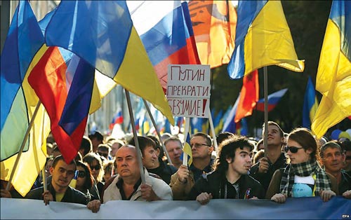 Минуло╖ нед╕л╕ у Москв╕, к╕лькох ╕нших рос╕йських м╕стах, а також в ╕нших кра╖нах в╕дбувся велелюдний «Марш миру» проти в╕йни в Укра╖н╕. Основна вимога – зупинити рос╕йське втручання у справи Укра╖ни ╕ перешкодити негласн╕й, але очевидн╕й участ╕ Рос╕╖ у в╕йн╕ на Донбас╕. «Досить брехати ╕ воювати» – головне гасло «Маршу миру» в Москв╕, який пройшов уздовж Бульварного к╕льця, розпочавшись ╕з Пушк╕нсько╖ площ╕ й зак╕нчившись на проспект╕ Сахарова. Через соц╕альн╕ мереж╕ на участь у марш╕ записалося близько 8 тисяч ос╕б. Оц╕нки числа безпосередн╕х учасник╕в в╕д пол╕ц╕╖ та орган╕затор╕в, як зазвичай, сильно р╕зняться. За оц╕нкою московського главку МВС, в акц╕╖ взяло участь 5 тисяч ос╕б, тод╕ як волонтери з групи «Б╕лий л╕чильник» (котр╕ працювали б╕ля рамок металошукач╕в) нарахували б╕льш н╕ж 26 тисяч. А в опозиц╕╖ кажуть про щонайменше 50 тисяч ос╕б (за ╕ншими даними — близько 100 тис. ос╕б). У Москв╕ порядок на «Марш╕ миру» охороняли не т╕льки пол╕цейськ╕, але ╕ дружинники, а в пов╕тр╕ кружляли вертольоти. ╤з кореспондентами Рад╕о «Свобода» розмовляла ж╕нка, яку не хот╕ли пускати на марш нав╕ть з «оф╕ц╕йним» гаслом маршу «Досить брехати й воювати». Олекс╕й Навальний написав у Тв╕ттер╕, що не дозволили пронести плакати про божев╕лля Пут╕на. Один ╕з л╕дер╕в руху «Сол╕дарн╕сть» Петро Царьков теж пов╕домляв, що багато плакат╕в вилучали. Так, ╕з соцмереж стало в╕домо, що у когось в╕д╕брали й плакат «Кремл╕вський шлях – ганьба Рос╕╖». Ще до початку акц╕╖ актив╕сти роздавали антиво╓нн╕ лист╕вки в╕д парт╕й, пол╕тичних рух╕в. Окрем╕ колони утворили парт╕╖ та пол╕тичн╕ рухи «Сол╕дарн╕сть», «Яблуко», «РПР-Парнас», громадськ╕ орган╕зац╕╖: ЛГБТ-сп╕льноти, «Зелен╕». Рух почався п╕д б╕й барабан╕в ╕з зап╕зненням на 20 хвилин, оск╕льки сво╓часному початку маршу намагалися перешкодити провокатори, прихильники угруповань «ЛНР» ╕ «ДНР», як╕ в Укра╖н╕ визнан╕ терористичними. У перш╕й колон╕ кореспонденти Рад╕о «Свобода» пом╕тили в╕домих опозиц╕йних пол╕тик╕в Бориса Н╓мцова, Михайла Касьянова, Юр╕я Рижова, журнал╕ст╕в, громадських актив╕ст╕в Дмитра Бикова, Олександра Рикл╕на. Деяк╕ люди прийшли на антиво╓нний марш у нац╕ональному укра╖нському вбранн╕, у в╕нках. Орган╕затори роздавали вс╕м бажаючим укра╖нськ╕ прапори. Люди, як╕ прийшли на «Марш миру», найчаст╕ше говорили, що не хочуть в╕йни з братн╕м народом, не хочуть асоц╕ювати себе з рос╕йською агресивною владою. «Марш миру – марш поборник╕в фашист╕в» – ╕з таким плакатом вийшли до московського «Маршу миру» к╕лька молодих людей. Але ╖х демаршев╕ зашкодила пол╕ц╕я. Збиралися групи п╕д прапорами так звано╖ «Новорос╕╖» та угруповань «ДНР» ╕ «ЛНР». Транспарант «Марш зрадник╕в», вив╕шений на будинку, провис╕в дек╕лька хвилин. В автозаки пол╕цейськ╕ в╕дправили ╕ людей ╕з георг╕╖вськими стр╕чками, як╕ намагалися спровокувати людей, що збиралися на марш. Провокатори кидали в учасник╕в «Маршу миру» яйця ╕ обливали зеленкою. Учасники маршу, д╕йшовши до Трубно╖ площ╕, випустили б╕лих голуб╕в – символ миру.