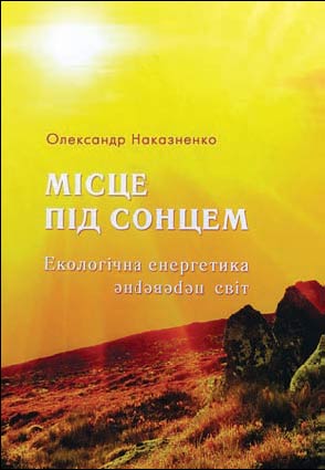 Нещодавно в Ки╓в╕ вийшла друком книга Олександра Наказненка «М╕сце п╕д Сонцем, або Еколог╕чна енергетика переверне св╕т». Автор — досить в╕домий журнал╕ст. В╕н вида╓ в ╤рпен╕ на Ки╖вщин╕ газету «Зоря При╕рп╕ння», щиро з╕знаючись, що видання виходить тод╕, коли редактору вда╓ться знайти грош╕. Проте Олександр Наказненко нер╕дко публ╕ку╓ться в центральних газетах, а також у р╕зних ╕рп╕нських виданнях ╕ в ╤нтернет╕. О. Наказненко зазнача╓ в сво╖й перш╕й книз╕: «Пам’ятники тотал╕тарному режиму – це далеко не т╕льки однотипн╕ штампован╕ лис╕ ╕доли, розставлен╕ за час╕в СРСР мало не в кожному населеному пункт╕. Пам’ятники тотал╕тарному режиму – це вс╕ АЕС, ТЕЦ, ГЕС, а також ЛЕП (л╕н╕╖ електропередач), якими вони вс╕ зв’язан╕ м╕ж собою та з кожним споживачем електроенерг╕╖. Вони неначе ненажерн╕ павуки – заплутали, оповили в ╓дину енергетичну систему ц╕л╕ народи (не т╕льки колишнього Союзу), якими легше керувати з одного мозкового, точн╕ше, безмозкового центру». Журнал╕ст пропагу╓ перех╕д на енерг╕ю сонця ╕ в╕тру, яка еколог╕чно безпечна ╕ дозволить багатьом кра╖нам здобути енергетичну незалежн╕сть. Ця тема дуже актуальна для Укра╖ни, особливо в наш час. О. Наказненко пророку╓, що незабаром дахи ╕ ст╕ни будинк╕в будуть «оздоблен╕» сонячними батареями. Також б╕ля будинк╕в стоятимуть в╕тряки. Автономн╕ джерела енерг╕╖ зведуть до нуля ╖╖ втрати при транспортуванн╕ по дротах ЛЕП (ця цифра становить 30 в╕дсотк╕в). На автозаправках заряджатимуть ╕ продаватимуть акумулятори електромоб╕л╕в. Автор пише: «Так╕ акумулятори будуть продавати у будь-яких торговельних точках, або ж просто «╕з земл╕» б╕ля трас – разом з яблуками, грибами й картоплею… Ну, це вже проекц╕я заруб╕жно╖ новац╕╖ на нашу д╕йсн╕сть». Згодом сонячн╕ батаре╖ встановлюватимуть на автомоб╕лях. Олександр Наказненко прогнозу╓ вплив еколог╕чно╖ енергетики на р╕зн╕ сфери життя, зокрема на родинну. Наприклад, нав╕що витрачати грош╕ на в╕дв╕дини тренажерних зал╕в? Адже вдома тренажери можна п╕дключити до динамомашин, як╕ вироблятимуть електроенерг╕ю. Журнал╕ст зазнача╓: «Зам╕сть того, щоб п╕тн╕ти десь «вхолосту», можна ж вдома заряджати побутов╕ акумулятори». Пот╕м на ц╕й енерг╕╖ працюватимуть телев╕зор, пральна машина, електроплитка чи осв╕тлення, або й опалення. Знову в с╕м’╖ зросте роль сильного чолов╕ка. В╕н зможе забезпечувати родинний достаток, не виходячи з хати. Сонячн╕ батаре╖ будуть встановлен╕ на полях. Батаре╖ обертатимуться, регулюючи вплив сонця ╕ дощу на с╕льськогосподарськ╕ культури. Водночас на ц╕й енерг╕╖ працюватиме нов╕тня техн╕ка с╕льського господарства. Вже нин╕ сонце- ╕ в╕троенергетика багато в чому економн╕ша за г╕дроенергетику. Наприклад, сумарна потужн╕сть Дн╕провського каскаду ГЕС – 3710 МВт, а для того, щоб ц╕ станц╕╖ працювали, довелося затопити 6969 квадратних к╕лометр╕в Дн╕провських плавн╕в, лук, пасовищ. Затоплена площа майже дор╕вню╓ Черн╕вецьк╕й област╕. А потужн╕сть найб╕льшо╖ у св╕т╕ електростанц╕╖ на сонячних батареях, що залишилася в окупованому Рос╕╓ю Криму, 100 МВт, як╕ виробляють сонячн╕ панел╕, розташован╕ на площ╕ 2 квадратних к╕лометри. Олександр Наказненко робить висновок: «Потужн╕сть, яку в сум╕ виробляють ш╕сть ГЕС Дн╕пр