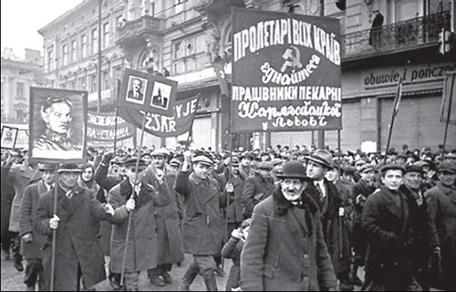 Фото з 1939 року, зроблене у Львов╕. Тод╕ деяка частина льв╕в’ян ще свято в╕рила, що радянська влада д╕йсно визволить ╖х з-п╕д польського гн╕ту ╕ з’╓дна╓ Сх╕дну ╕ Зах╕дну Укра╖ну. Нав╕ть деяк╕ поляки щиро в╕рили в соц╕альну ╕ класову справедлив╕сть...