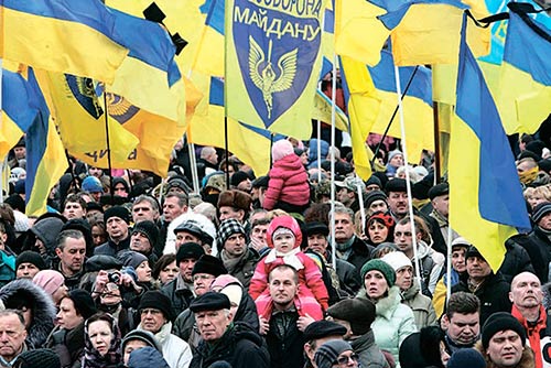 Виступаючи перед багатотисячною громадою, яка з╕бралася на Майдан╕, де р╕к тому загинули Геро╖, Глава держави зазначив: «Вони стояли тут пл╕ч-о-пл╕ч, представники р╕зних етнос╕в, в╕роспов╕дань; вих╕дц╕ з╕ сходу ╕ з заходу, п╕вноч╕ ╕ п╕вдня; як╕ говорили укра╖нською, рос╕йською та ╕ншими мовами. ╥х об’╓днала сп╕льна Батьк╕вщина, сп╕льна В╕тчизна, ╖х об’╓днала Укра╖на, палка любов до не╖ ╕ геро╖чна боротьба за сповнене г╕дност╕ ╓вропейське майбутн╓ нашо╖ держави».