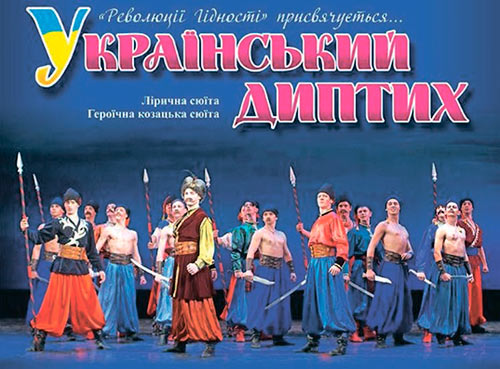 В╕дома ╕стина: коли говорять музи, сл╕в не потр╕бно. Адже мовою мистецтва можна не лише передати силу почутт╕в, а й висловити свою любов до геро╖чного минулого нашого народу. ╤ тут можемо прив╕тати колектив Ки╖всько╖ мун╕ципально╖ укра╖нсько╖ академ╕╖ танцю ╕мен╕ Сержа Лифаря, зусиллями яко╖ з’явилася вистава «Укра╖нський диптих» (музика К. Данькевича та ╢. Досенка).