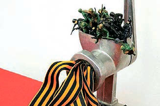 Вдалою роботою Войс назвав м’ясорубку, в яку завантажуються ф╕гурки радянських ╕ н╕мецьких солдат╕в, як╕ в н╕й перемелюються. З-п╕д нож╕в м’ясорубки виходить георг╕╖вська стр╕чка.