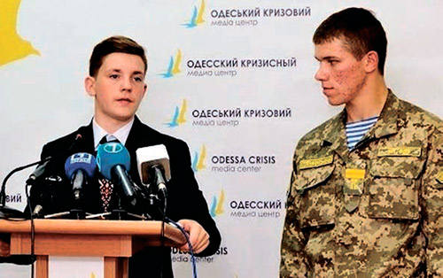 На фото: зустр╕ч юного винах╕дника Бориса Чуб╕на з в╕йськовими