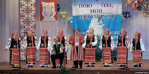 Десять укра╖нських народних п╕сень пролунали на традиц╕йному щор╕чному свят╕ народно╖ п╕сн╕ в Севастопол╕, яке в╕дбулося 25 жовтня 2015 року в Будинку культури колишнього радгоспу «Севастопольський» селища Сахарна Головка. Орган╕заторами заходу виступила «влада» Балаклавського району та адм╕н╕страц╕я Будинку культури. На концерт╕ п╕д назвою «Пою тебе, мой Севастополь» загалом виступили чотири десятки самод╕яльних сп╕вочих колектив╕в ╕з Севастополя, Ялти та Бахчисарая. Укра╖номовн╕ сп╕воч╕ гурти виконували переважно по дв╕ народн╕ п╕сн╕ – одну укра╖нську й одну рос╕йську. Ансамбль «Елег╕я» з Орлин╕вського селищного центру культури та дозв╕лля (кер╕вник В╕ктор╕я Накорн╓╓ва) виконав народну п╕сню «Сонце низенько, веч╕р близенько», яка зачарувала зал ╕ викликала шален╕ оплески. Козацький ж╕ночий хор «Севастопольчанка» п╕д кер╕вництвом Тамари Маслово╖ виконав л╕ричну авторську п╕сню «Сонячна долина» ╕ пот╕шив глядач╕в танцями. Вокальний ансамбль Асоц╕ац╕╖ нац╕онально-культурних товариств Севастополя п╕д кер╕вництвом В╕ктора Ковальчука виконав л╕ричну авторську п╕сню укра╖нською мовою «Дарую вам п╕сню», яка ран╕ше не лунала з╕ сцени. Севастопольський самод╕яльний вокальний ансамбль «Надвеч╕р’я» виконав народну п╕сню «Десь мене чека╓ коник вороний», яку глядач╕ зустр╕ли оплесками. Вокальний ансамбль «В╕зерунки» з селища Сахарна Головка (кер╕вник Олександр М╕зеря) виконав укра╖нську народну п╕сню «Ой кум до куми залицявся», а також п╕сню «Ой хоча би повечор╕ло», як╕ також радо в╕тали глядач╕. Ще чотири укра╖нськ╕ народн╕ п╕сн╕ пролунали у виконанн╕ чотирьох переважно рос╕йськомовних сп╕вочих колектив╕в Севастополя. Вт╕м, деяк╕ вокальн╕ ансамбл╕ виконували неформатн╕ пол╕тичн╕ п╕сн╕ прокремл╕вського характеру. Зокрема, г╕сть фестивалю – ялтинський вокальний ансамбль «Три криниц╕» – виконав п╕сню, в як╕й були слова: «От Камчатки до Одессы у Москвы есть интересы», «От Курил до Приднестровья, от Донецка до Кремля – это матушка Россия, и делить её нельзя». Цю ж п╕сню на тому ж фестивал╕ виконав й ╕нший фольклорний ансамбль, незважаючи на неписану фестивальну традиц╕ю, що п╕сн╕ не мають повторюватись. До реч╕, цей «шедевр» б╕льше року тому породила рос╕йська сп╕вачка В╕ка Циганова разом з гармон╕стом Петром Матрьон╕чевим та «народним губернатором ДНР» Павлом Губар╓вим. Представники ансамбл╕в скаржилися на в╕дсутн╕сть опалення у прим╕щенн╕, в якому в╕дбувався фестиваль, а також на те, що м╕сцев╕ «чиновники» та м╕ськ╕ телеканали «повн╕стю про╕гнорували» зах╕д.