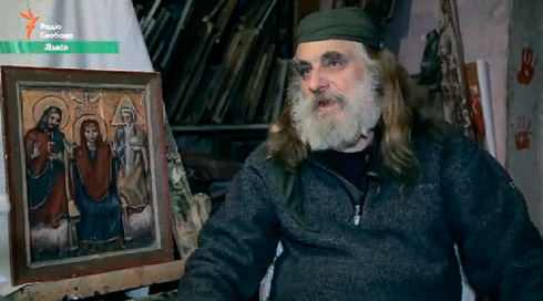 Його називали художником Майдану. А намальован╕ ним ╕кони майдан╕вц╕ мають по вс╕й Укра╖н╕. В╕д першого дня ╕ до к╕нця березня льв╕вський ╕конописець Левко Скоп був на Майдан╕ у Ки╓в╕. Ск╕льки ╕кон в╕н написав, достеменно не зна╓. Художник пережив ус╕ найважч╕ ╕ кривав╕ под╕╖ Майдану. А нин╕ не уявля╓ сво╓ життя вже без допомоги во╖нам. Художник, рокер, поет, викладач. Робота – це стан душ╕, вона ма╓ дарувати красу ╕ допомагати ╕ншим. В╕н не бо╖ться експериментувати у творчост╕ ╕ цим дивувати – р╕зних людей по-р╕зному. Хтось назива╓ його шаленим диваком, а хтось — художником в╕д Бога. У цьому весь Левко Скоп. В╕н малю╓ на стар╕й церковн╕й ╜онт╕, малював на дошках, як╕ привозили майдан╕вцям, щоб ╖х палили ╕ гр╕лись. На Майдан Левко Скоп по╖хав з першого дня. 24 листопада у Ки╓в╕ застудився ╕ вир╕шив на к╕лька дн╕в повернутися додому. Власне, н╕ч, коли «Беркут» бив студент╕в, пров╕в у дороз╕ додому, з Ки╓ва до Дрогобича. Зранку д╕знався про ц╕ под╕╖ ╕ митт╓во забув про св╕й кепський стан. «Н╕ паспорта, жодних документ╕в не мав при соб╕, н╕чого не мав. Одразу поб╕г у центр в Дрогобич╕, де стояли автобуси на Ки╖в, зв╕дти пост╕йно вони ви╖жджали, ╕ по╖хав». В╕дтод╕ аж до к╕нця березня Майдан не залишав. Ус╕ штурми, провокац╕╖, важк╕ дн╕ ╕, найг╕рше, кривав╕ – там. Дос╕ йому важко згадувати 18 лютого на ╤нститутськ╕й. «Я тод╕ поб╕г по ╤нститутськ╕й догори. Кам╕ння подавав, шини. Хлопц╕ кричали: «Д╕ду, ти куди?», зв╕сно, жартували. Нас водою облили. Граната то там, то тут вибухала. «Беркут╕вц╕» пустили якийсь газ, спершу б╕лий, а пот╕м рожевий, просто перед╕ мною, я не мав маски, просто вдихнув. Але зрозум╕в, що то щось не те, ╕ закрився хусткою, але було п╕зно. Пот╕м таки потрапив у л╕карню. Це газ був, який просто випалю╓ леген╕. Л╕кувався тривалий час. Найг╕рше тод╕, 18-го, було вт╕кати. По мен╕ «Беркут» пройшовся ногами, зв╕сно, що могли просто вбити. Пригадую, на мене народ навалився, думав, що задихнусь, бо маю астму. Я вскочив у метро «Хрещатик», там теж все заблоковано, але вдалось-таки до╖хати до «Майдану». Мене вже там син розшукував, хтось сказав, ╕ написали нав╕ть у «Фейсбуц╕», що бачили побитого сивого чолов╕ка. Словом, мене вже похоронили». К╕лька дн╕в п╕сля кривавих лютневих дн╕в на Майдан╕ художник не м╕г н╕як оговтатись. Не мав в╕дпов╕д╕ на запитання, чому молод╕ люди загинули, а в╕н залишився живий. З цього стану вийшов завдяки малюванню. Хоча ╖хав сюди без жодних помисл╕в малювати. Але, побачивши дерев’яний щит, таки не втримався. «Хтось зробив дерев’яний «брон╕к». Вс╕ ще з того витвору посм╕ялись. Я соб╕ сказав, що мен╕ цей «брон╕к» подоба╓ться. Взяв ╕ розмалював. ╤ п╕сля того як почав малювати! Мен╕ дзв╕нок з одного намета, другого, у когось день народження, треба намалювати образ. Спочатку дарувалось просто нашим. Один чолов╕к був на Грушевського, я запитую, який хочеш образ. Вибирай дошку, ота п╕д╕йде, велика така була, в╕н каже, що так. ╤ ма╓ велику ╕кону. Не пам’ятаю, ск╕льки тих ╕кон намалював. 18-го, коли почався штурм, люди рятували мо╖ роботи з виставки. Занесли ╖х у профсп╕лки. Там вони ╕ згор╕ли. Залишився архистратиг Миха╖л, який потрапив у музей Майдану». На Майдан╕ була його виставка, продав ╕кони на аукц╕он╕, а грош╕ в╕ддавав на потреби Революц╕╖ 