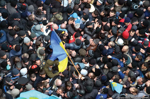 М╕тинг проти сепаратизму й м╕тинг пророс╕йських сил б╕ля парламенту Кримсько╖ автоном╕╖. С╕мферополь, 26 лютого 2014 року