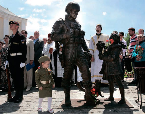 У С╕мферопол╕ минуло╖ суботи в╕дкрили пам’ятник так званим «вв╕чливим людям» — «зеленим чолов╕чкам», як╕, власне, й захоплювали два роки тому Крим. В╕н виконаний з бронзи. Це во╖н з автоматом, д╕вчинка з букетом кв╕т╕в ╕... к╕т. Один з ╕н╕ц╕атор╕в встановлення пам’ятника — батько кримського «прем’╓ра», депутат так званого «парламенту республ╕ки» Валер╕й Аксьонов. А в церемон╕╖ в╕дкриття взяли участь ╕ сам «прем’╓р» Серг╕й Аксьонов та представник президента Рос╕╖ в Криму Олег Б╓лав╓нцев. Об╕йшовся пам’ятник в 5 м╕льйон╕в рубл╕в, з╕браних, як запевняють, як пожертви. ╤ ще один монумент найближчим часом з’явиться у С╕мферопол╕: сюди вже привезли з-п╕д Москви пам’ятник рос╕йськ╕й ╕мператриц╕ Катерин╕ II. Повернути ╖╖ хочуть на те ж м╕сце, де вона стояла до 1921 року — в Центральному парку С╕мферополя. Кошти на пам’ятник збирала громадська орган╕зац╕я «Русское единство». Не на дитячий садочок, яких у Криму катастроф╕чно не вистача╓, школу чи л╕карню, чи облаштування того ж парку, де у к╕нц╕ червня мають встановити од╕озну ╕мператрицю. «Катерина Велика повернулася в Крим! Я в╕рю, що назавжди!» - рад╕сно заявила оч╕льниця «Русского единства» — Аксьонова (аякже ж!) Олена. Таке враження, що ось такими монументами нин╕шн╕ «керманич╕» Криму сп╕шать заф╕ксувати, закр╕пити якнайдовше ту фантасмагоричну д╕йсн╕сть, у як╕й перебувають. ╤ невже ╕стор╕я — з тою ж Катериною — н╕чому не вчить?
