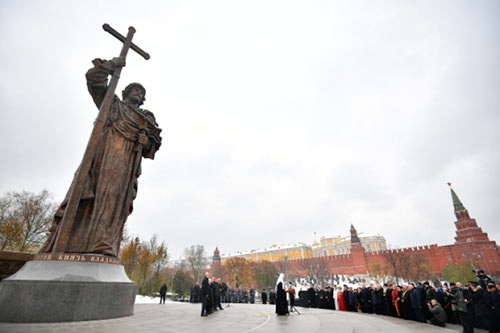 Президент Укра╖ни Петро Порошенко назвав в╕дкриття пам’ятника князю Володимиру в Москв╕ спробою г╕бридного привласнення ╕стор╕╖. Про це в╕н сказав п╕д час в╕дкриття пам’ятника укра╖нському поету та ф╕лософу Григор╕ю Сковород╕ в Люблян╕ (Словен╕я). «У ц╕ дн╕ в╕дкрито ще один пам’ятник. У Кремл╕ б╕ля непохованого Володимира Лен╕на вони в╕дкрили пам’ятник нашому ки╖вському князю Володимиру. Це ще одна демонстрац╕я спроби г╕бридного привласнення ╕стор╕╖», – заявив Порошенко, пише УН╤АН. Як пов╕домлялося, у Москв╕ 4 листопада президент РФ Володимир Пут╕н в╕дкрив пам’ятник ки╖вському князю Володимиру. У церемон╕╖ також взяв участь патр╕арх Московський Кирил, пов╕домля╓ видання «Говорит Москва». «Це велика, значима под╕я ╕ для Москви, ╕ для вс╕╓╖ нашо╖ кра╖ни, ╕ для вс╕х наших сп╕вв╕тчизник╕в. Новий пам’ятник – шана нашому видатному предку. Особливо шанованому святому, державному д╕ячев╕ та во╖ну, духовному засновнику держави рос╕йсько╖», – сказав Пут╕н. За його словами, символ╕чно, що в╕дкриття пам’ятника проходить в день народно╖ ╓дност╕ Рос╕╖. Кирил освятив пам’ятник. «Пам’ятник князю Володимиру – це символ ╓дност╕ вс╕х народ╕в, батьком яких в╕н ╓. А це народи ╕сторично╖ Рус╕, як╕ нин╕ проживають у межах багатьох держав. Пам’ятник батьков╕ може бути скр╕зь, де живуть його д╕ти, в цьому нема╓ н╕якого протир╕ччя, але погано, якщо д╕ти забувають, що у них один батько», – сказав Кирил. Монумент розташований на Боровицькому пагорб╕. Скульптуру доставили туди в н╕ч на 15 жовтня, монтаж завершився 20-го числа. За даними видання, висота пам’ятника становить 19,5 метра, проте в ╕нших джерелах вказу╓ться висота 17 м. Спочатку його планувалося встановити на Воробйових Горах, але це викликало невдоволення жител╕в Москви ╕ експерт╕в. Як в╕домо, в останн╕ роки Пут╕н неодноразово робив заяви, зг╕дно з яким прямим спадко╓мцем Ки╖всько╖ Рус╕ ╓, на його думку, в першу чергу нин╕шня Рос╕я, а не Укра╖на. Деякий час тому в рос╕йськомовн╕й В╕к╕пед╕╖ стаття «Ки╖вська Русь» була перейменована на «Давньоруська держава», а ╖╖ столицею на першому м╕сц╕ вказано Новгород, а вже пот╕м Ки╖в. З таким ухилом також були переписан╕ нов╕ п╕дручники ╕стор╕╖ Рос╕╖. http://zik.ua