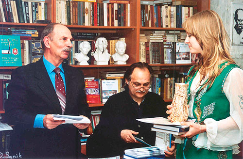 На фото: 2007 р╕к, Д. А. Кононенко вруча╓ призи переможцям конкурсу