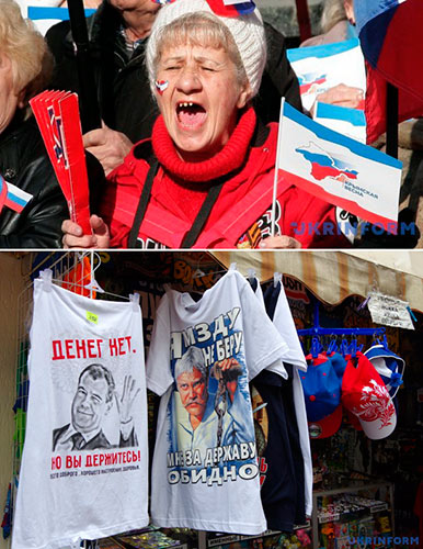 А все ж таки, як ╖м там живеться в Криму? Не в'язням - з тими все ясно. Не новим господарям життя з личками ФСБ, як╕ рад╕сно вселяються в квартири, де ран╕ше жили укра╖нськ╕ оф╕цери. А ╕ншим. Людям, як╕ охоче б╕гли на референдум, голосували за возз'╓днання ╕з «╕стор╕ч╓ской Род╕ной», як╕ на╖вно думали, що прих╕д Рос╕╖ - це як жирний ц╕лор╕чний туристичний сезон, де рос╕яни щедро платитимуть за все, як╕ п╕ддалися нав╕юванню, що найкраще, що ╓ в житт╕ - це кровн╕ узи з Кремлем... Протягом к╕лькох тижн╕в ми мандрували Фейсбуком, шукаючи на персональних стор╕нках нин╕шн╕х кримчан та фейсбук-акаунтах окупац╕йних м╕н╕стерств ╕ в╕домств, у блогах ╕ публ╕кац╕ях св╕дчення простих людей. Трохи систематизували, згрупували ╕ пропону╓мо ╖х вам. ╤ не для того, щоб показати, який у Криму бардак. Бардак був ╕ ран╕ше, за укра╖нських час╕в. Але рятуючись в╕д нього в окупац╕╖, з╕ткнулися з явищем набагато жорстк╕шим - знаменитим рос╕йським розпилом ╕ дерибаном, поставленим на широку ╕мперську ногу, ╕ механ╕чно байдужим до населення окупац╕йним чиновництвом. ╤ вже не «побуз╕ш», як ран╕ше, бо цар далеко, а м╕сцевий мандарин швидко заткне пельку.