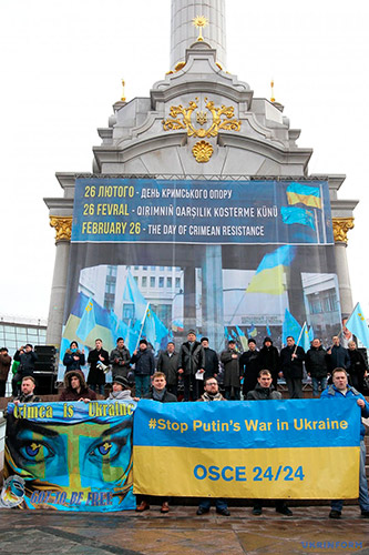 На Майдан╕ Незалежност╕ в Ки╓в╕ завершився Марш сол╕дарност╕ з кримськотатарським народом, укра╖нцями ╕ людьми ╕нших нац╕ональностей, що проживають в тимчасово окупованому Рос╕╓ю Криму. Про це пов╕домля╓ кореспондент «Укр╕нформу» з м╕сця под╕╖. Учасники Маршу ухвалили резолюц╕ю проти рос╕йсько╖ окупац╕╖ ╕ закликали м╕жнародне сп╕втовариство активн╕ше ╕ р╕шуче чинити тиск на Рос╕ю для припинення анекс╕╖ Криму. Також вони звернулися до укра╖нсько╖ влади ╕ закликали б╕льше працювати над зв╕льненням пол╕тичних в'язн╕в у Криму та вир╕шити проблеми внутр╕шньо перем╕щених ос╕б. Актив╕сти тримали прапори та портрети затриманих кримчан та вигукували гасла “Крим — це Укра╖на”, “Слава героям кримськотатарського народу” тощо. Завершився марш Г╕мном Укра╖ни та г╕мном кримськотатарського народу. Як пов╕домляв «Укр╕нформ», 26 лютого 2014 року п╕д ст╕нами буд╕вл╕ Верховно╖ Ради Криму в╕дбувся багатотисячний м╕тинг кримськотатарських актив╕ст╕в на п╕дтримку територ╕ально╖ ц╕л╕сност╕ Укра╖ни. Наступного дня почалася окупац╕я п╕вострова Рос╕йською Федерац╕╓ю. 26 лютого в Ки╓в╕ проходив Марш сол╕дарност╕ з кримськотатарським народом, укра╖нцями та людьми ╕нших нац╕ональностей, що проживають в тимчасово окупованому Рос╕╓ю Криму. Учасники Маршу пройшли ходою за маршрутом: вулиця ╤нститутська - вул. Шовковична - вул. Грушевського - Площа ╢вропейська - Майдан Незалежност╕. П╕сля зак╕нчення ходи на Майдан╕ Незалежност╕ в╕дбувся м╕тинг. На ньому виступили л╕дери Меджл╕су, актив╕сти, правозахисники. Акц╕ю орган╕зували Меджл╕с кримськотатарського народу, Кримськотатарський ресурсний центр, "Автомайдан Ки╖в", "Крим - SOS", ╕нш╕ громадськ╕ орган╕зац╕╖.