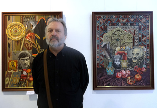 На фото: Костянтин Могилевський б╕ля диптиха «Т╕н╕ забутих предк╕в»