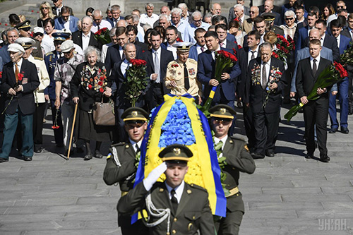 Члени Каб╕нету м╕н╕стр╕в Укра╖ни та прем'╓р-м╕н╕стр Укра╖ни Володимир Гройсман поклали кв╕ти до могили Нев╕домого солдата в парку В╕чно╖ слави в Ки╓в╕. Про це пов╕домля╓ться на сайт╕ Кабм╕ну. У Дн╕пр╕ представники нац╕онал╕стичних рух╕в намагалися завадити акц╕╖ Союзу радянських оф╕цер╕в, заборонено╖ судом орган╕зац╕╖ через ╖╖ антиукра╖нськ╕й позиц╕╖. Об╕йшлося без сутичок. Пол╕ц╕я лише склала адм╕нпротокол на ж╕нку, яка прийшла ╕з забороненою георг╕╖вською стр╕чкою. Про це йдеться в сюжет╕ "ТСН". У Харков╕ к╕лька червоних прапор╕в з собою принесли люди, як╕ з╕бралися б╕ля Мемор╕алу Слави. Пол╕ц╕я дозволила розгорнути т╕льки той, що був без радянських серпа ╕ молота. Один з учасник╕в прин╕с транспарант з написом «Г╕тлер ╕ Бандера напали на Укра╖ну». Транспарант правоохоронц╕ вилучили. А в Запор╕жж╕ м╕тинг провела пророс╕йська орган╕зац╕я «Безсмертний полк». Прийшло не б╕льше 40 ос╕б. Правоохоронц╕в було в 10 раз╕в б╕льше. www.unian.ua *** 22 червня 1941 року, попри та╓мну угоду про ненапад (пакт Молотова-Р╕ббентропа 1939 року) та т╕сну в╕йськово-економ╕чну сп╕впрацю м╕ж Н╕меччиною ╕ СРСР, нацистська Н╕меччина атакувала радянськ╕ частини по вс╕й л╕н╕╖ кордону в╕д Балт╕йського до Чорного моря. Розпочалася н╕мецько-радянська в╕йна 1941-1945 рок╕в, як складова, але основна частина Друго╖ св╕тово╖ в╕йни. Залежн╕сть обох воюючих стор╕н в╕д укра╖нського економ╕чного, сировинного потенц╕алу, людських ресурс╕в зумовила вкрай безкомпром╕сний, гранично-кривавий характер бойових д╕й на територ╕╖ республ╕ки. Через це Укра╖на найб╕льше потерп╕ла в╕д г╕тлер╕всько╖ агрес╕╖ та в╕д згубних прорахунк╕в стал╕нського кер╕вництва. Нищ╕вний валв╕йни дв╕ч╕ прокочувався по ╖╖ територ╕╖, не обминувши нав╕ть найменшого населеного пункту, придушивши, пон╕вечивши сво╖м смертоносним тягарем десятки м╕льйон╕в людей. Укра╖нський напрям, за г╕тлер╕вським планом «Барбаросса», був одним з найголовн╕ших. На початок грудня 1941 року в╕йська вермахту окупували практично всю територ╕ю Укра╖ни. Метою нацистського режиму були п╕дкорення та колон╕зац╕я Укра╖ни, винищення ╖╖ людност╕. Майже одразу територ╕я тод╕шньо╖ Укра╖ни була под╕лена й вкрилася мережею табор╕в смерт╕. Десятки тисяч людей р╕зних нац╕ональностей було розстр╕ляно в Ки╓в╕, Харков╕, Дн╕пропетровську, Р╕вному та ╕нших м╕стах ╕ селах. Страшною трагед╕╓ю час╕в окупац╕╖ стало винищення мирного населення в Бабиному Яру в Ки╓в╕. Загалом за роки окупац╕╖ в Укра╖н╕ загинули 3,9 млн. цив╕льних. До Н╕меччини з Укра╖ни було вивезено близько 2,4 млн. чолов╕к. Десятки тисяч з них загинули. Укра╖на не т╕льки серед радянських республ╕к, а й з ус╕х кра╖н св╕ту зазнала найб╕льших втрат за роки Друго╖ св╕тово╖ в╕йни. Т╕льки безпосередн╕ збитки, завдан╕ народному господарству республ╕ки, становили близько 285 млрд. крб. (в ц╕нах 1940 р. загальн╕ збитки СРСР – 679 млрд., з яких 255 млрд. – Рос╕╖). Ця сума вп’ятеро перевищувала затрати УРСР на буд╕вництво нових завод╕в, фабрик, зал╕зниць, електростанц╕й, шахт, радгосп╕в, МТС та ╕нших державних п╕дпри╓мств протягом трьох дово╓нних п’ятир╕чок разом узятих. На ру╖ни перетворилися 714 м╕ст ╕ селищ м╕ського типу, понад 28 тис. с╕л, 10 млн. людей залишилися без житла. Кр╕