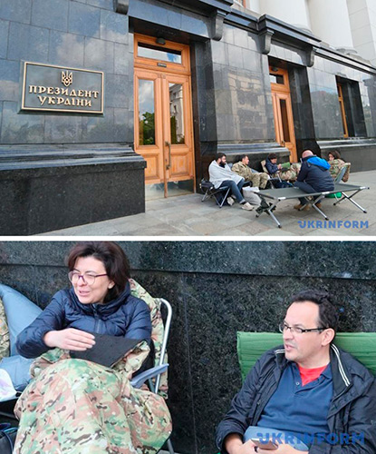 П╕д Адм╕н╕страц╕╓ю Президента продовжують голодувати голова фракц╕╖ "Об'╓днання "Самопом╕ч" Олег Березюк, в╕це-сп╕кер парламенту Оксана Сиро╖д ╕ народний депутат Тарас Пастух. Як пов╕домля╓ кореспондент «Укр╕нформу», народн╕ депутати сидять б╕ля входу до Адм╕н╕страц╕╖ Президента, вкрившись покривалами в╕д холоду, вживають т╕льки воду. Голова фракц╕╖ "Об'╓днання "Самопом╕ч" Олег Березюк пов╕домив, що вноч╕ голодуюч╕ спали в намет╕, оск╕льки було холодно. Намет був розкладений б╕ля Адм╕н╕страц╕╖ Президента. Як пов╕домлялося, Олег Березюк 19 червня оголосив голодування з вимогою до кер╕вництва держави вир╕шити проблему вивезення см╕ття з╕ Львова. «Льв╕в на сьогодн╕ окупований ворогом. У нього прийшов ворог, який протягом року цин╕чно, брешучи на кожному кроц╕, знуща╓ться не т╕льки з кер╕вника м╕ста чи пол╕тично╖ сили - знуща╓ться з людей, як╕ там живуть... Держава в особ╕ центрально╖ влади знуща╓ться з них (льв╕в'ян - ред.) цин╕чно. Вимагаючи припинення цього знущання ╕ припинення брехн╕ в держав╕, я як людина, л╕кар ╕ народний депутат Укра╖ни прийняв екстраординарне р╕шення. Н╕коли не думав, що це р╕шення буду приймати у ХХ╤ стол╕тт╕, тут. Я оголошую голодування, п╕дтримуючи льв╕в'ян ╕ протестуючи проти свав╕лля центрально╖ влади», - заявив Березюк. Водночас прем'╓р-м╕н╕стр Володимир Гройсман 19 червня сказав, що готовий на зас╕данн╕ уряду ╕н╕ц╕ювати вид╕лення з резервного фонду 50 млн. грн. на облаштування пол╕гону для см╕ття у Льв╕вськ╕й област╕. Кр╕м того, в╕н закликав м╕сцеве самоврядування в╕дгукнутися на прохання мера Львова, якщо воно над╕йде, ╕ тимчасово прийняти льв╕вське см╕ття на сво╖х мун╕ципальних пол╕гонах. Тим часом вибухнув скандал через те, що депутати в╕д "Самопомоч╕" у м╕ськ╕й рад╕ Микола╓ва - районного центру Льв╕вщини - проголосували проти прийому твердих побутових в╕дход╕в з╕ Львова. Загалом для ухвалення р╕шення забракло одного голосу. Прем'╓р заявив, що неодноразово намагався допомогти Львову у вир╕шенн╕ "см╕тт╓во╖ кризи", але д╕йшов висновку, що "Льв╕вська м╕ська рада, м╕ський голова або не може, або не здатен" займатися ц╕╓ю проблемою. 21 червня в╕це-прем'╓р-м╕н╕стр Геннад╕й Зубко, який очолю╓ урядову команду з допомоги Львову у вир╕шенн╕ см╕тт╓во╖ кризи, заявив, що потр╕бно 2 тижн╕, щоб повн╕стю зв╕льнити м╕сто Лева в╕д накопиченого см╕ття. За його словами, розроблено план д╕й як на найближчий пер╕од, так ╕ на перспективу. План включа╓ як разове вивезення твердих побутових в╕дход╕в, так ╕ системне очищення контейнерних майданчик╕в. Також в╕це-прем'╓р додав, що можливо, влада звернеться до мешканц╕в Львова з проханням допомогти прибрати м╕сто.
