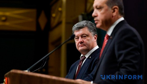 Туреччина п╕дтриму╓ територ╕альну ц╕л╕сн╕сть Укра╖ни включно з Кримом ╕ не визна╓ його анекс╕╖. Про це сказав Президент Турецько╖ Республ╕ки Реджеп Та╖п Ердоган п╕сля зустр╕ч╕ з Президентом Укра╖ни Петром Порошенком п╕д час сп╕льного бриф╕нгу, пов╕домля╓ кореспондент «Укр╕нформу». «Сьогодн╕ як на переговорах тет-а-тет, так ╕ м╕ж делегац╕ями ми мали можлив╕сть грунтовно розглянути наш╕ в╕дносини. Зокрема, ми обговорили м╕жнародн╕ та рег╕ональн╕ питання що стосу╓ться наших кра╖н, в тому числ╕ ╕ питання безпеки Чорноморського рег╕ону... Я ще раз запевнив пана Порошенка, що Туречина продовжуватиме п╕дтримувати суверен╕тет Укра╖ни, ╖╖ територ╕альну ц╕л╕сн╕сть, включно з Кримом, та пол╕тичну консультован╕сть», - сказав Президент Туреччини. Ердоган наголосив, що з Порошенком домовились д╕яти скоординовано, проводячи консультац╕╖ один з одним. Також Ердоган зауважив, що Туреччина не визнала ╕ не визна╓ анекс╕ю Криму. «Ми дуже задоволен╕ п╕дтримкою, яку нада╓ Укра╖на кримським татарам, що довели в╕рн╕сть сво╖й кра╖н╕. Ми продовжуватимемо пильно сл╕дкувати за станом наших брат╕в ╕ п╕дтримувати це питання на м╕жнародному порядку денному», - сказав Президент Туреччини.
