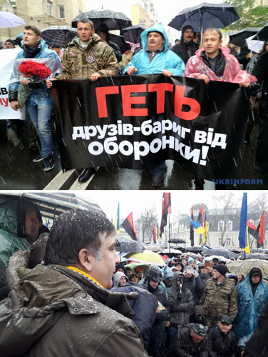 Минуло╖ нед╕л╕ на Михайл╕вськ╕й площ╕ у центр╕ Ки╓ва з╕бралися учасники "Маршу обурених", анонсованого л╕дером парт╕╖ "Рух нових сил", екс-главою Одесько╖ ОДА М╕хе╖лом Саакашв╕л╕. Як пов╕домля╓ з м╕сця под╕╖ кореспондент «Укра╖нсько╖ правди», на площ╕ з╕бралося к╕лькасот людей з прапорами Укра╖ни та червоно-чорними. Як заявив у коментар╕ «УП» соратник Саакашв╕л╕ Давид Сакварел╕дзе, присутн╕й на "Марш╕", учасники акц╕╖ вимагають ухвалити закон про ╕мп╕чмент ╕ створити антикорупц╕йний суд. "Да╓мо (влад╕) час до 3 грудня. Якщо не приймуть - збира╓мо людей ╕ оголошу╓мо "народний ╕мп╕чмент", - заявив в╕н. Серед учасник╕в також - дружина та син Саакашв╕л╕, нардепи Юр╕й Дерев'янко, Юр╕й Левченко, Серг╕й Лещенко. П╕д час виступу на ╕мпров╕зован╕й сцен╕ Саакашв╕л╕ заявив: "Наш╕ акц╕╖ реально небезпечн╕ - але сво╖м мирним характером ╕ для ол╕гархату. Ми реально намага╓мося зд╕йснити переворот, але це переворот св╕домост╕, а не в держав╕". "Ми пройдемо маршем до площ╕ Конституц╕╖ ╕ там на в╕че оголосимо наступний план д╕й", - заявив Саакашв╕л╕. Порядок п╕д час заходу на Михайл╕вськ╕й площ╕ забезпечувало к╕лькадесят спецпризначенц╕в з боку вул. Велика Житомирська. Учасники "Маршу" рушили з площ╕ в напрямку Майдану Незалежност╕ та дал╕ - по вул. ╤нститутськ╕й, вигукуючи "╤мп╕чмент!". В район╕ вул. Хрещатик к╕льк╕сть учасник╕в "Маршу" сягнула близько 1000 ос╕б. Д╕йшовши до Адм╕н╕страц╕╖ президента, учасники акц╕╖ вигукували "Баригу на нари!", "Банду геть!" та виклали на про╖ждж╕й частин╕ з лампадок "Корупц╕я вбива╓". За ╖хн╕ми словами, це - символ╕чне нагадування Петру Порошенку про необх╕дн╕сть боротися з корупц╕╓ю. Також учасники акц╕╖ кинули в пол╕ц╕ю к╕лька запальничок, але конф╕кту не сталося: орган╕затори "Маршу" в╕двели актив╕ст╕в в╕д л╕н╕╖ кордону пол╕ц╕╖. П╕сля акц╕╖ п╕д АП учасники "Маршу" рушили до площ╕ Конституц╕╖ п╕д Верховною Радою, де в╕дбулося чергове в╕че за участю Саакашв╕л╕ та ╕нших пол╕тик╕в та актив╕ст╕в, як╕ беруть участь в акц╕╖ "Всеукра╖нський зб╕р". *** М╕хе╖л Саакашв╕л╕ на в╕че закликав людей "працювати" ╕з сус╕дами та знайомими, щоб "процес народного ╕мп╕чменту" пройшов усп╕шно. "Пропоную з 3 грудня почати процедуру народного ╕мп╕чменту президента ╕ влади взагал╕",- сказав Саакашв╕л╕. За його словами, "щоб цей процес пройшов усп╕шно,… треба працювати на кожному м╕крорайон╕, на кожному ОСББ". Водночас у Facebook Саакашв╕л╕ оголосив старт навчального табору "Пол╕т-Спартанц╕" 17 листопада на площ╕ Конституц╕╖. В╕н стверджу╓, що слухач╕ табору "отримають знання та навички, потр╕бн╕ для усп╕шного зламу ол╕гарх╕чно╖ системи". М╕хе╖л Саакашв╕л╕ пооб╕цяв збирати людей п╕д Радою щонед╕л╕ до 3 с╕чня. Як в╕домо, акц╕я "Всеукра╖нський зб╕р" за велику пол╕тичну реформу розпочалася п╕д ст╕нами Верховно╖ Ради 17 жовтня. ╥╖ учасники вимагали ухвалити закони про скасування депутатсько╖ недоторканност╕, створення Антикорупц╕йного суду ╕ зм╕ни виборчого законодавства. Учасники акц╕╖ встановили п╕д ВР к╕лька намет╕в. 19 жовтня пол╕тична парт╕я "Рух нових сил" та депутати "Сапопомоч╕" вир╕шили продовжувати протестну акц╕ю п╕д парламентом, решта учасник╕в м╕тингу з акц╕╖ вийшли. 21 жовтня учасники акц╕╖ п╕д Верховною Радою ут
