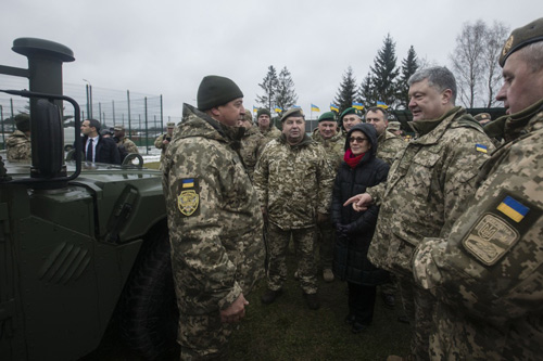 «Наш╕ Збройн╕ Сили – во╖ни миру, як╕ встали на шляху рос╕йських в╕йськ, захистили Укра╖ну ╕ сх╕дний кордон усього ╓вропейського континенту. Наш╕ Збройн╕ Сили – во╖ни чест╕, для яких обов'язок та присяга – понад усе. Наш╕ Збройн╕ Сили – во╖ни мужност╕, безстрашн╕ профес╕онали в╕йськово╖ справи», - сказав Президент Петро Порошенко п╕д час виступу на урочистих заходах з нагоди Дня Збройних Сил Укра╖ни у М╕жнародному центр╕ миротворчост╕ та безпеки на Льв╕вщин╕. Верховний Головнокомандувач Збройних Сил назвав укра╖нське во╖нство горд╕стю ╕ славою Укра╖ни. Президент в╕дзначив, що 37 ╕з 46 фронтових Геро╖в Укра╖ни – з╕ складу Збройних Сил. В ц╕лому за проявлен╕ мужн╕сть та геро╖зм 14173 в╕йськовослужбовця Збройних Сил Укра╖ни в╕дзначен╕ державними нагородами. З них 2 320 – посмертно. Присутн╕ вшанували пам'ять загиблих укра╖нських геро╖в хвилиною мовчання. Президент п╕дкреслив, що «в╕дроджен╕ Збройн╕ Сили Укра╖ни день за днем нарощують св╕й бойовий потенц╕ал ╕ сво╖ бойов╕ спроможност╕». При цьому в╕н пов╕домив, що протягом двох останн╕х рок╕в арм╕ю поповнили понад сто тисяч контрактник╕в: близько с╕мдесяти тисяч минулого року, понад тридцять одна тисяча – в цьому роц╕. «Ми в╕дмовилися в╕д частково╖ моб╕л╕зац╕╖. ╤, до реч╕, хот╕в би зайвий раз нагадати, що така зм╕на не стала би реальн╕стю без М╕нських угод», - п╕дкреслив Петро Порошенко. Президент наголосив, що на сьогодн╕ створено оперативний резерв в╕йськовозобов’язаних чисельн╕стю понад 135 тисяч во╖н╕в з бойовим досв╕дом, «як╕ пройшли фронт ╕ готов╕, коли що, туди повернутися». «Ми як╕сно покращили забезпечення Збройних Сил Укра╖ни нов╕тн╕ми та модерн╕зованими зразками озбро╓ння та в╕йськово╖ техн╕ки. Завтра, я спод╕ваюсь, Верховна Рада буде голосувати бюджет на 2018 р╕к, ╕ на арм╕ю в цьому бюджет╕ передбачено 86 м╕льярд╕в гривень. Чи могли коли-небудь про це мр╕яти укра╖нськ╕ во╖ни?», - сказав Верховний Головнокомандувач. В╕н п╕дкреслив, що ця цифра на 25% б╕льше, н╕ж поточного 2017 року, з яких п'яту частину бюджету буде використано на озбро╓ння та в╕йськову техн╕ку, ╕ це на 34% б╕льше, н╕ж цьогор╕ч. Глава держави п╕дкреслив, що у стисл╕ терм╕ни ми створили нов╕ бойов╕ бригади, орган╕зували над╕йну систему забезпечення в╕йськ, розпочали буд╕вництво та реконструкц╕ю в╕йськових об’╓кт╕в, ╕ «надзвичайно покращили соц╕альний захист в╕йськовослужбовц╕в». Президент також п╕дкреслив: «Збройн╕ Сили Укра╖ни в боях з рос╕йським агресором набули безц╕нного бойового досв╕ду». В╕н висловив слова подяки ╕ п╕дтримки нашим в╕йськовослужбовцям, як╕ стримують ворога, витримуючи безпрецедентне навантаження в╕д д╕й агресора, який застосову╓ найсучасн╕ше важке озбро╓ння: сучасн╕ танки, важку артилер╕ю, засоби протипов╕тряно╖ оборони, розв╕дки та рад╕оелектронно╖ боротьби. По завершен╕ урочистих заход╕в Президент ознайомився ╕з умовами розм╕щення в╕йськовослужбовц╕в. Зокрема, Глава держави в╕дв╕дав одну ╕з казарм та ╖дальню. Одноповерхова казарма на 300 л╕жко-м╕сць, збудована в 2017 роц╕. Обладнана спальним прим╕щенням, необх╕дними сан╕тарними прим╕щеннями, к╕мнатою для збер╕гання особистих речей в╕йськовослужбовц╕в, сушарнею двома к╕мнатами п╕дготовки оф╕цер╕в до занять та прим╕щенням 