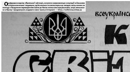 P.S. Повторю╓мо трир╕чно╖ витримки «морального» листа до м╕н╕стра культури ╢. Нищука – цей документ вже теж став ╕стор╕╓ю. ╤ ще одне: на оцифрованих нами арх╕вних стор╕нках «Кримсько╖ св╕тлиц╕» будемо в╕днин╕ розм╕щати ╕нформац╕ю про те, хто д╕йсно викону╓ цю роботу. А ви качайте, землячки, качайте – якщо на щось б╕льше не здатн╕… *** P.P.S. До нашого «Св╕тличного» 25-р╕ччя плану╓мо встигнути оцифрувати повн╕стю 1995 р╕к видання газети, арх╕в за липень-серпень 95-го ма╓ з’явитися вже цього тижня, виглядайте - http://svitlytsia.crimea.ua/pdf.html
