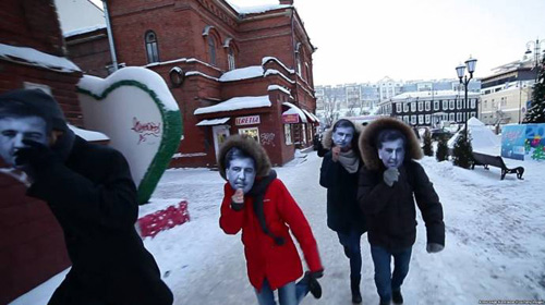 У рос╕йському м╕ст╕ Томськ к╕лька актив╕ст╕в у в╕дпов╕дь на слова президента РФ Володимира Пут╕на про екс-президента Груз╕╖ М╕хе╕ла Саакашв╕л╕ влаштували перформанс в масках останнього. Про це пов╕домляють "Сиб╕р.Реал╕╖". "У нед╕лю в центр╕ Томська група людей в масках Мыхе╕ла Саакашв╕л╕ влаштувала акц╕ю у в╕дпов╕дь на одне з висловлювань Володимира Пут╕на, яке в╕н зробив на нещодавн╕й прес-конференц╕╖", - пише видання. Йдеться про в╕дпов╕дь Пут╕на на запитання Ксен╕╖ Собчак про те, що Олекс╕ю Навальному ╕ представникам опозиц╕╖ не дають проводити передвиборну кампан╕ю ╕ чинять ╖м р╕зноман╕тн╕ перешкоди. "Уже ставили тут запитання про Укра╖ну. Ви хочете, щоб у нас по площах б╕гали десятки таких Саакашв╕л╕. Ось т╕, кого ви назвали, - це Саакашв╕л╕ в рос╕йському вим╕р╕. ╤ ви хочете, щоб так╕ Саакашв╕л╕ дестаб╕л╕зували ситуац╕ю в кра╖н╕?" - сказав тод╕ Пут╕н. Орган╕зував зах╕д член арт-групи "Сну-Сну" Олександр Колпаков. Як в╕домо, президент Рос╕╖ Володимир Пут╕н, в╕дпов╕даючи на питання претендента на кр╕сло глави РФ Ксен╕╖ Собчак про конкуренц╕ю, почав залякувати "укра╖нським сценар╕╓м". www.pravda.com.ua