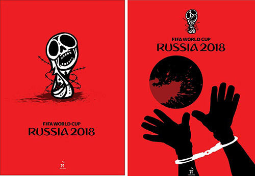 КИ╥ВСЬКИЙ ХУДОЖНИК СТВОРИВ ЖОРСТК╤ ПЛАКАТИ ДО ЧС З ФУТБОЛУ У РОС╤╥. ЙОГО ЗАБАНИВ ФЕЙСБУК