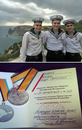 Волонтери м╕жнародно╖ розв╕дувально╖ сп╕льноти InformNapalm п╕д час мон╕торингу у соцмережах проф╕л╕в рос╕йських в╕йськовослужбовц╕в знайшли докази участ╕ в операц╕╖ захоплення Криму 41-╖ бригади ракетних катер╕в Чорноморського флоту Рос╕йсько╖ Федерац╕╖. Про це пов╕домля╓ться на сайт╕ InformNapalm. "На ц╕й фотограф╕╖ рос╕йськ╕ моряки, як╕ служили на малому ракетному корабл╕ “М╕раж“. Цей корабель входить до складу 166-го Новорос╕йського див╕з╕ону малих ракетних корабл╕в 41-╖ бригади ракетних катер╕в (номер в/ч бригади 72165). Як бачимо, вс╕ вони брали участь в операц╕╖ захоплення Криму ╕ отримали за це нагороди в╕д м╕н╕стерства оборони РФ", - йдеться у пов╕домленн╕. На основ╕ даних з проф╕лю соцмереж╕ було встановлено, що Головань, який брав участь в акц╕ях рос╕йсько╖ опозиц╕╖, зокрема т. зв. марш╕ м╕льйон╕в, служив матросом на малому ракетному корабл╕ “М╕раж” ╕ за участь в операц╕╖ захоплення Криму нагороджений медаллю. "... Матрос Головань опубл╕кував у сво╓му фотоальбом╕ не лише фото медал╕, а й фото посв╕дчення до не╖. Вочевидь, рос╕йська опозиц╕я - явище парадоксальне, поста╓ питання – чи ╕сну╓ в Рос╕╖ опозиц╕я?" - наголосили в розв╕дсп╕льнот╕. Зазнача╓ться, Денисенко ╕ Барабаш також нагороджен╕ медаллю за участь в операц╕╖ захоплення Криму. "Посв╕дчення до медалей за окупац╕ю Криму в╕йськовикам 41-╖ бригади ракетних катер╕в п╕дписував кап╕тан 1-го рангу Олександр В’ячеславович Толмачов", - п╕дкреслю╓ться в пов╕домленн╕. Ран╕ше Генеральна прокуратура Укра╖ни пов╕домила про п╕дозру кап╕тану 1-го рангу Толмачову за статтями Крим╕нального Кодексу Укра╖ни: ч. 3 ст. 110 – Посягання на територ╕альну ц╕л╕сн╕сть ╕ недоторканн╕сть Укра╖ни, ч. 2 ст. 28 – Вчинення злочину групою ос╕б, групою ос╕б за попередньою змовою, орган╕зованою групою або злочинною орган╕зац╕╓ю, ч. 2 ст. 437 – Планування, п╕дготовка, розв’язування та ведення агресивно╖ в╕йни. https://www.ukrinform.ua