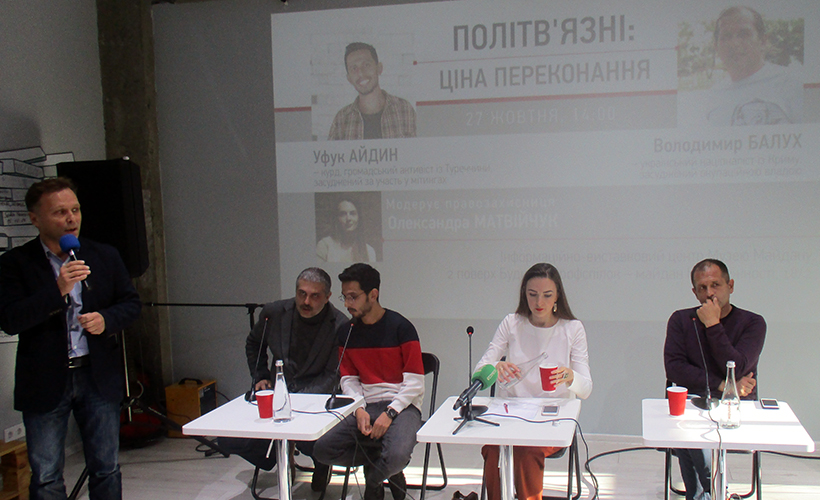 27 жовтня в ╤нформац╕йно-виставковому центр╕ Музею Майдану в Ки╓в╕ в╕дбулася зустр╕ч «Пол╕тв’язн╕: ц╕на переконання». На зустр╕ч прийшли укра╖нець Володимир Балух ╕ курд ╕з Туреччини Уфук Айдин. Модератором зустр╕ч╕ виступила правозахисниця Олександра Матв╕йчук.