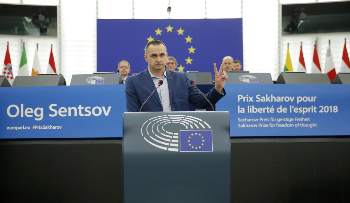 Колишн╕й пол╕тв’язень, укра╖нський режисер Олег Сенцов п╕д час виступу у ╢вропейському парламент╕ застер╕г ╓вропарламентар╕╖в в╕д сп╕впрац╕ з президентом Рос╕╖ Володимиром Пут╕ним, поки Кремль продовжу╓ свою агрес╕ю проти Укра╖ни.