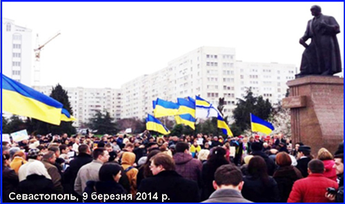 За два десятил╕ття незалежност╕ Укра╖ни Севастополь, хоч ╕ мав особливий статус ╕ був м╕стом центрального п╕дпорядкування, та так ╕ не став справд╕ укра╖нським м╕стом. Мен╕ здавалося, що за час╕в УРСР Севастополь був б╕льш укра╖нським, н╕ж за час╕в незалежно╖ Укра╖ни – принаймн╕, тод╕ не було тако╖ виражено╖ укра╖нофоб╕╖, не пересл╕дувалося в╕дкрито все укра╖нське, у магазинах в╕льно продавалися укра╖нська л╕тература ╕ газети. З кожним роком незалежност╕ флотська столиця попри загальну ╕деолог╕ю дружби ╕ братства народ╕в та флот╕в ментально, культурно ╕ ╕дейно все б╕льш дистанц╕ювалася в╕д Укра╖ни. Результати Всеукра╖нського референдуму 1 грудня 1991 року вже не згадувалися, з м╕ських б╕бл╕отек газети ╕ журнали з його результатами були видален╕, мовби його н╕коли й не було. Та у столиц╕ Укра╖ни цим не бентежилися. Л╕дери парламентських парт╕й чи висок╕ урядов╕ чиновники, коли й при╖жджали до Севастополя помочити в мор╕ ноги, з гумором називали севастопольських укра╖нц╕в "д╕аспорою в д╕аспор╕" ╕ вважали цей рег╕он не сво╖м "електоратом". Тож Севастополь розвивався такою соб╕ абсолютною культурною, гуман╕тарною ╕ ╕деолог╕чною зрос╕йщеною пров╕нц╕╓ю Укра╖ни, без наявност╕ тут яскравих л╕дер╕в. Якщо ╕ появлялися под╕бн╕, вони тут же перебиралися до столиц╕ ╕ про Севастополь ╕ В╕йськово-Морськ╕ сили Укра╖ни вже згадували досить р╕дко. Ментал╕тет севастопольц╕в, як ╕ в радянськ╕ часи, продовжував базуватися на славному минулому, тобто на двох геро╖чних оборонах м╕ста. Оборони ц╕, хоч кожного разу м╕сто здавали ворогам, рос╕йською пропагандою були вдало трансформован╕ в немеркнуч╕ подвиги моряк╕в Чорноморського флоту, який жодного разу свою головну базу ╕ м╕сто в╕д ворожих посягань так ╕ не врятував – завжди кидав ╖х на поталу ворогам. Символом цього геро╖зму став пам’ятник затопленим кораблям. Та прикр╕ поразки до уваги не бралися, як ╕ факт, що у Севастопол╕ кор╕нних севастопольц╕в, як╕ б проживали тут до ╤╤ Св╕тово╖ в╕йни ╕ боронили м╕сто, у м╕ст╕ майже не зосталося. Тому громадську позиц╕ю у Севастопол╕ визначали ╕деологи рос╕йського Чорноморського флоту ╕ при╖ждж╕, в основному в╕дставн╕ ветерани флоту, МВС, КДБ, прокуратур та ╖х с╕м’╖. До них, а не до укра╖нських орган╕зац╕й, була прикута увага ╕ любов м╕сцево╖ влади. В╕дродження В╕йськово-Морських сил м╕сцева влада сприйняла обережно, як прикре непорозум╕ння, весь час косячи око на Москву ╕ належно╖ допомоги укра╖нським морякам не надавала. Кр╕м того, у св╕дом╕сть б╕льшост╕ севастопольц╕в через роки закритого, а тому в╕др╕заного в╕д загальноукра╖нського життя м╕ста, через його тривалу багатор╕чну режимн╕сть, було вмонтовано синдром рос╕йського "старшого брата", який за роки незалежност╕ Укра╖ни демонтувати не спромоглися, навпаки, п╕дживлювали. Цим синдромом ╕ характеризувалися стосунки м╕ж ЧФ РФ та м╕сцевою владою, з одного боку ╕ ВМС Укра╖ни, з ╕ншого. Н╕коли командувач ЧФ, завжди член ЦК КПРС, не ходив до голови м╕ста, лише голова м╕ста до нього. Та й демонтувати синдром "старшого брата" у м╕сцевих чиновник╕в ╕ владц╕в за в╕дсутност╕ патр╕отизму, порядност╕ ╕ чуття державц╕в було неможливо, бо якраз з ╕нтегральним показником цих якостей громадянина у них були 