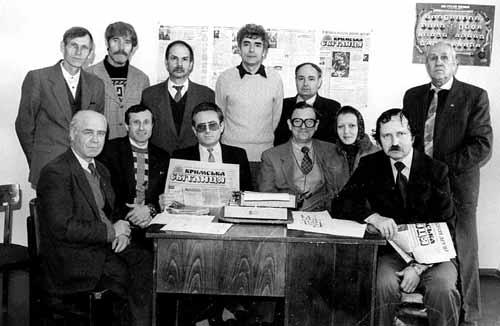 Треба ж, саме у ці непрості для газети дні святкує свій 60-літній ювілей один із засновників "Кримської світлиці", нині - працівник Представництва Президента України в Криму Павло Романович Власенко. Павле Романовичу, та хіба ж Вам тоді було легше? Переборемо й це! На фото: 1992 рік. "Кримська світлиця" "першого скликання". У центрі за столом (другий справа) - Павло Романович Власенко.