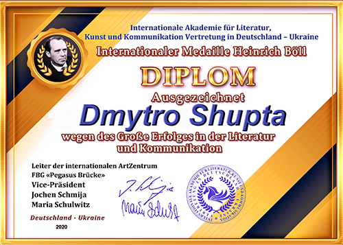 Давн╕й автор ╕ читач «Кримсько╖ св╕тлиц╕» поет Дмитро Шупта став лауреатом М╕жнародно╖ л╕тературно-мистецько╖ прем╕╖ ╕мен╕ Генр╕ха Бьолля (Н╕мечина) за 2020 р╕к. Кримськ╕ «св╕тличани» щиро в╕тають л╕тературного побратима ╕ бажають нових мистецьких ужинк╕в на нив╕ Слова! Як пов╕домила «Укра╖нська л╕тературна газета», цьогор╕чними лауреатами почесно╖ М╕жнародно╖ л╕тературно-мистецько╖ прем╕╖ ╕мен╕ Генр╕ха Бьолля стали також в╕дом╕ укра╖нськ╕ поети: Микола Будлянський (Черн╕г╕в), Галина Запорожченко (Микола╖в), Над╕я Бойко (Льв╕в); знана письменниця Ел╕на Заржицька (Дн╕про); композитори Петро Лойтра (К╕ровоградська обл.) ╕ Борис Раденко (Ки╖в). ╥х в╕дзначено за визначну творчу д╕яльн╕сть. Науковця Володимира Хоменка нагороджено за визначну м╕жнародну ╕ громадську д╕яльн╕сть. Також лауреатами престижно╖ прем╕╖ стали поети Михась Пазняков, Тетяна Жил╕нська, л╕тературознавець Людмила Воробйова, письменниця, композитор Олена Шахно (Елен Модель) (Б╕лорусь), письменник Микола Шамсутд╕нов (РФ) та науковець Ольга Бежанова (США). Нагорода на честь видатного н╕мецького письменника, Нобел╕вського лауреата заснована М╕жнародно╖ Академ╕╓ю д╕яч╕в л╕тератури, мистецтв та комун╕кац╕й (Н╕меччина, кер╕вник – письменниця та мистецтвознавець Олена Анань╓ва).