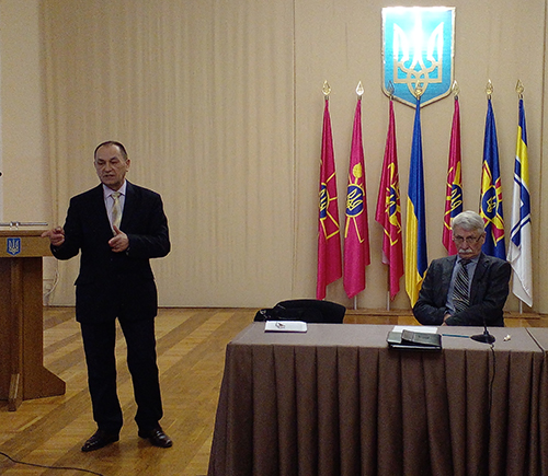 На фото: виступа╓ кап╕тан Серг╕й Мартинюк, за столом полковник Олександр Сасько