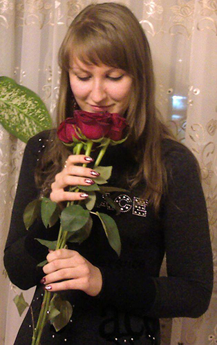 Мен╕ б заварити трояндовий шал зам╕сть кави, Додати не цукор – ц╕лунки ╕ ласки очей, Св╕й почерк зм╕нити на шрифт загадково-яскравий, ╤ впасти у спеку розхристано-св╕жим дощем.