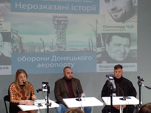 Кадрами, на яких заф╕ксований Герой Укра╖ни ╤ван Зубков, розпочалася в ╤нформац╕йно-виставковому центр╕ Музею Майдану в Ки╓в╕ 18 с╕чня зустр╕ч ╕з «к╕боргами» (так вороги назвали захисник╕в Донецького аеропорту). Один ╕з «к╕борг╕в» ╤ван Зубков командував ротою. П╕д час одного ╕з бо╖в в╕н викликав вогонь артилер╕╖ на себе, прикривши в╕дх╕д п╕дрозд╕лу. Старший лейтенант ╤ван Зубков загинув 20 с╕чня 2015 року. Р╕дн╕ змогли його поховати лише на сотий день п╕сля загибел╕. П╕д час оборони аеропорту ╤вана Зубкова заф╕льмував в╕деооператор ╕нформац╕йно╖ служби ТСН Владислав Журенко. Модерувала зустр╕ч Юл╕я П╕шта, волонтерка, а нин╕ прац╕вниця Нац╕онального музею Революц╕╖ Г╕дност╕. На зустр╕ч прийшли дво╓ учасник╕в оборони аеропорту Владислав Журенко ╕ Геннад╕й Дубров. ╤з «к╕боргами» Олександром Чубом ╕ Кирилом Недрею зв’язувалися через зум. Олександр Чуб – мандр╕вник ╕ педагог. Учасник Добровольчого укра╖нського корпусу «Правий сектор». У Донецькому аеропорту був три дн╕ ╕ отримав поранення. Говорить, що т╕ три дн╕ були найкращими в його житт╕. За три м╕сяц╕ про╖хав на велосипед╕ десять тисяч к╕лометр╕в Америкою, показуючи ф╕льм про в╕йну за Донбас. Заснував ╕ розвива╓ сп╕льноту дитячих поход╕в ╕ табор╕в «Строкат╕ ╓ноти». Геннад╕й Дубров до Революц╕╖ Г╕дност╕ був начальником в╕дд╕лення банку. Брав участь у розгон╕ «русск╕х марш╕в» у Микола╓в╕. На Майдан╕ врятований в╕д смерт╕ незнайомим д╕дусем, а в аеропорту – завдяки тому, що вчасно посковзнувся. П╕сля АТО став пом╕чником депутата Ки╖вради. Сп╕взасновник Всеукра╖нсько╖ сп╕лки учасник╕в бойових д╕й та волонтер╕в, напрямком д╕яльност╕ яко╖ ╓ ресоц╕ал╕зац╕я ветеран╕в. Кирило Недря – лейтенант Збройних Сил Укра╖ни, кандидат ╕сторичних наук, волод╕╓ чотирма мовами. Зав╕дувач кафедри гуман╕тарних дисципл╕н ╕ психолог╕╖ пол╕цейсько╖ д╕яльност╕ Дн╕пропетровського державного ун╕верситету внутр╕шн╕х справ. Тренер-╕нструктор Нац╕онально╖ пол╕ц╕╖ Укра╖ни та низки м╕жнародних орган╕зац╕й. В Донецькому аеропорту неспод╕вано зустр╕в однокурсника, з яким на радощах домовився ввечер╕ випити чаю, проте не судилося. В╕йна… Кирило Недря каже, що на в╕йн╕ вируча╓ гумор: «В╕н на меж╕ розумного. Мирна людина не зрозум╕ла б». Владислав Журенко понад усе мр╕╓ зняти перемогу Укра╖ни на фронт╕. Його принцип: «Не забува╓мло ╕ не пробача╓мо». Олександр Чуб зараз в горах. На зв'язок вийшов з висоти п╕втори тисяч╕ метр╕в. На запитання, чому заснував дитячий таб╕р, в╕дпов╕в: "Найкраща реаб╕л╕тац╕я – улюблена справа». Вважа╓ться, що оборона Донецького аеропорту тривала 242 дн╕. Насправд╕ 244. На 244-й день ╕з аеропорту вийшов ╕з групою Максим Ридзанич. Юл╕я П╕шта запитала, що найб╕льше вразило ╕ що б хот╕ли забути? Геннад╕й Дубров: «Найб╕льше вразили люди. Бачиш ╖х вперше ╕ розум╕╓ш, що вони прикриють твою спину, а ти прикри╓ш ╖х». Кирило Недря: «В╕йна н╕коли не в╕дпустить. Ти з не╖ можеш п╕ти, але вона з тебе не п╕де. Не хочеться згадувати про траг╕чн╕ реч╕ – загибель друз╕в. Той, яким я був, там би не вижив. Я там народився вдруге. А якось ми дивилис╜я сепарське телебачення. Був прямий еф╕р з героями Новорос╕╖, як╕ взяли ДАП (Донецький аеропорт). Там по к╕лька раз╕в на день нас брали. На рухомому 