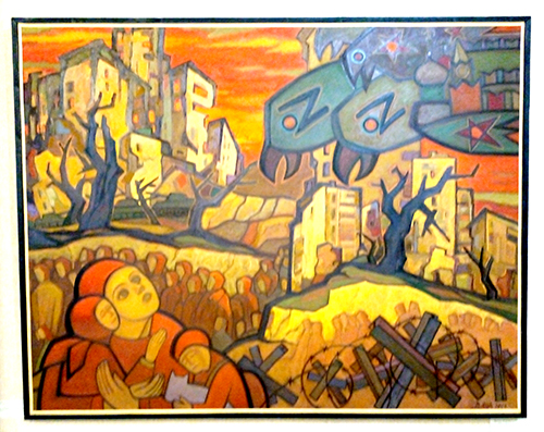 В Нац╕ональному музе╖ л╕тератури Укра╖ни в Ки╓в╕ 23 липня в╕дкрилася художня виставка «Неспалима. З глибини стол╕ття. Незборима». ╥╖ автори – Олександр Мельник, Василь Корчинський ╕ Олесь Соловей, знан╕ укра╖нськ╕ митц╕-побратими, як╕ працюють у жанр╕ ╕сторично╖ картини. Кожен з них ма╓ власний ориг╕нальний стиль, але визначальними для них ╓ закор╕нен╕сть в укра╖нську культуру та ╕стор╕ю. Олександр Мельник зверта╓ться до ╕стор╕╖ Рус╕. Картина «Д╕яння Андр╕я Боголюбського на Рус╕» в╕дтворю╓ трагед╕ю 1169 року, коли князь володимирський захопив Ки╖в ╕ нещадно пограбував ╕ поруйнував м╕сто. Василь Корчинський у картин╕ «В╕йна. Б╕женц╕» про╕люстрував сучасну рос╕йсько-укра╖нську в╕йну, в як╕й укра╖нський народ потерпа╓ в╕д агрес╕╖ нащадк╕в Андр╕я Боголюбського. Олесь Соловей зображу╓ видатних д╕яч╕в минувшини Укра╖ни. Це твори «Антон╕й ╕ Феодос╕й», «Мандр╕вний ф╕лософ» (Григор╕й Сковорода), «Микола М╕хновський» та ╕нш╕.