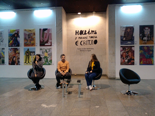 9 вересня у Нац╕ональному центр╕ «Укра╖нський д╕м» у Ки╓в╕ в╕дбулася презентац╕я художньо-документального проекту «Нав╕ть у темн╕ часи ╓ св╕тло». Куратори проекту Олена Старанчук, Олег Грищенко ╕ Анна Сарв╕ра з╕брали сто ╕стор╕й про людей, як╕ в тяжкий час московсько╖ агрес╕╖ працюють для Укра╖ни. Ц╕ ╕стор╕╖ було роздано двадцятьом пров╕дним укра╖нським ╕люстраторам ╕з Ки╓ва, Львова, Одеси, Сум ╕ Харкова, як╕ в граф╕чних малюнках показали сво╓ бачення.