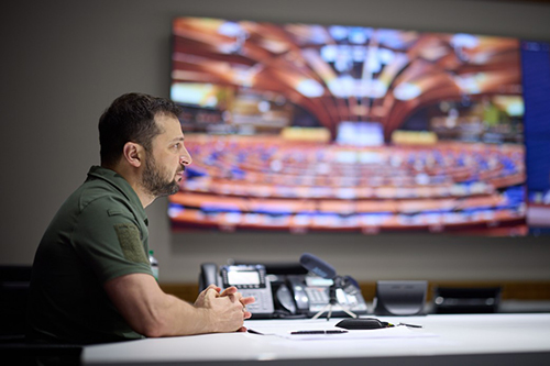 Коли Рос╕я почала повномасштабне вторгнення, ви швидко ухвалили принципове р╕шення й виключили державу-агресора з Ради ╢вропи. Вами ухвален╕ й резолюц╕╖, як╕ засуджують рос╕йський терор ╕ злочини ц╕╓╖ держави проти м╕жнародного права. Принципов╕сть пану╓ ╕ на вс╕х ╕нших р╕внях ╓вропейських ╕нституц╕й.