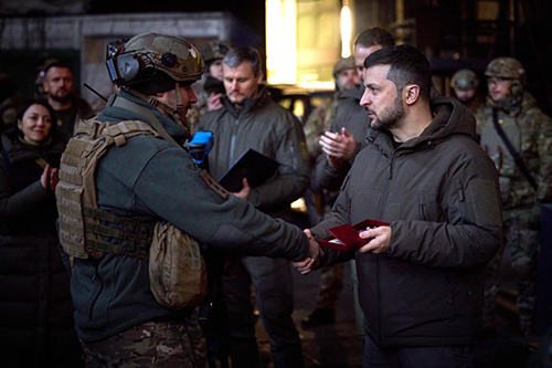 Президент Укра╖ни Володимир Зеленський побував ╕з робочою по╖здкою в Донецьк╕й област╕, де зустр╕вся з укра╖нськими в╕йськовими, як╕ обороняють м╕сто Бахмут.