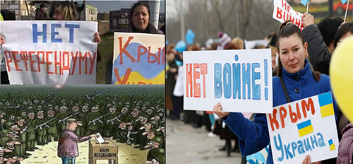 Н╕, автор зовс╕м не збира╓ться стверджувати тут, що в 2014 не було тих, хто рад╕сно в╕тав анекс╕ю, як порятунок в╕д примарних "по╖зд╕в дружби", напакованих страшними б╓нд╓ро-нацистам╕, що, "як в╕домо", вже гуркот╕ли по рейках, тягнучи в обоз╕ ненависну нату-гейропу, нелюбу "солов'╖ну", освенц╕ми та нацвайлери.