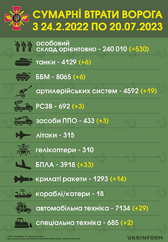Ми з╕брали для вас ╕нформац╕ю про п’ятсот дванадцятий день Велико╖ в╕йни: чим жили Укра╖на та укра╖нц╕ 20 липня 2023 року.
