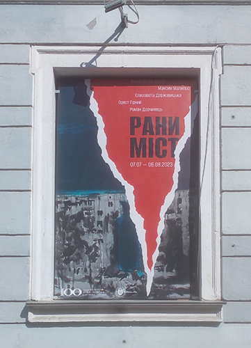 В Нац╕ональному музе╖ «Ки╖вська картинна галерея» експону╓ться виставка «Рани м╕ст». ╥╖ автори – група молодих ки╖вських художник╕в: Анатол╕й Погор╕лий, Максим Малильо, ╢лизавета Державицька, Орест Г╕рний ╕ Роман Дорчинець. ╥х об’╓днало осмислення рол╕ арх╕тектурно╖ спадщини спочатку в контекст╕ варварсько╖ забудови м╕ст Укра╖ни, а нин╕ продовжилося прагненням привернути увагу всього св╕ту до руйн╕вних насл╕дк╕в, що ╕з собою принесла в╕йськова агрес╕я Рос╕╖. Митц╕ зображують ру╖ни буд╕вель Харкова, Мар╕уполя, Бородянки та ╕нших м╕ст. В╕йна н╕вечить усе на сво╓му шляху, зм╕нюючи звичн╕ кра╓види до невп╕знаванност╕. Ру╖ни – доля багатьох житлових будинк╕в та ╕сторичних пам’яток нашо╖ кра╖ни. «Чи не опинюсь в одниму з них саме я?» - н╕ме запитання, що повиса╓ в пов╕тр╕ п╕д час кожно╖ пов╕тряно╖ тривоги.