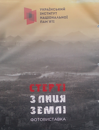 В Ки╓в╕, на Контрактов╕й площ╕ експону╓ться фотовиставка Укра╖нського ╕нституту нац╕онально╖ пам'ят╕ «Стерт╕ з лиця земл╕». Виставка презенту╓ фотосв╕дчення руйнувань р╕зних кра╖в, де рос╕йський агресор не залишив шансу на виживання – Луганщини, Донеччини, Харк╕вщини та П╕вдня Укра╖ни. Тематичн╕ банери акцентують увагу на знищених на 80-100 в╕дсотк╕в населених пунктах. Серед них – Попасна, Мар’╖нка, Соледар, Бахмут тощо. На Донеччин╕ знищено 41 населений пункт на 60-100% ╕ 18 121 об’╓кт житлового фонду. Втрати рос╕ян за захоплення Бахмута сягнули 100 тисяч живо╖ сили. Але бо╖ на околицях Бахмута тривають дос╕. Аерофотозйомка св╕дчить, що в м╕ст╕ не лишилося практично жодного вц╕л╕лого будинку. Поет Артем Полежа╓в назвав Луганщину сонячними воротами Укра╖ни. В╕н зазнача╓: «Кожного ранку, коли над Укра╖ною сходить сонце, воно сходить спочатку над Луганщиною». На «сонячних воротах Укра╖ни» знищено 31 населений пункт на 60-100% ╕ 10201 об’╓кт житлового фонду. На Харк╕вщин╕ знищено 62 населен╕ пункти на 60-100% ╕ 25 563 об’╓кти житлового фонду. Внасл╕док повномасштабного вторгнення Рос╕йсько╖ Федерац╕╖ знищено в Микола╖вськ╕й област╕ 8 населених пункт╕в на 60-100% ╕ 5074 об’╓кти житлового фонду, а в Херсонськ╕й област╕ – 18 населених пункт╕в - на 60-100% ╕ 8227 об’╓кт╕в житлового фонду. Точний ступ╕нь зруйнованост╕ багатьох населених пункт╕в внасл╕док окупац╕╖ або продовження бойових д╕й на ╖хн╕й територ╕╖ встановити неможливо. Масов╕ руйнування продовжуються ╕ в Запор╕зьк╕й област╕, 70% територ╕╖ яко╖ теж окупован╕ рос╕йськими в╕йськами з 8 березня 2022 року. Прикордонн╕ територ╕╖ Сумсько╖ та Черн╕г╕всько╖ областей пост╕йно обстр╕люють ся.