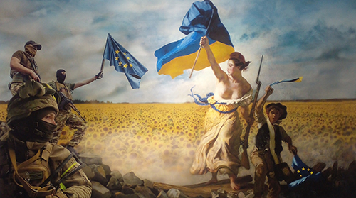 В╕д початку повномасштабного вторгнення Рос╕╖ в Укра╖ну француженка Фанн╕ Лешеваль╓ шукала спос╕б висловити свою п╕дтримку Укра╖н╕ через мистецтво. Нин╕ вона працю╓ в техн╕ц╕ фотомонтажу: по╓дну╓ св╕тлини укра╖нського во╓нного повсякдення з репродукц╕ями класичних твор╕в зах╕дно╓вропейського живопису ХV╤╤ – початку ХХ стол╕ть, створюючи разюч╕ образи, що змушують зупинитися, вдивитися та в╕дчути. В результат╕ в одному простор╕ опиняються «Свобода, що веде народ» французького художника Х╤Х стол╕ття Ежена Делакруа ╕ укра╖нськ╕ во╖ни на фото. Свобода веде укра╖нц╕в до боротьби за Незалежн╕сть сво╓╖ Батьк╕вщини. На ╕нших фото молод╕ укра╖нськ╕ во╖ни прощаються з сво╖ми коханими. Наш╕ геро╖ йдуть захищати Батьк╕вщину ╕ сво╖х д╕вчат. Методом монтажу Фанн╕ Лешеваль╓ зам╕ню╓ укра╖нку на ж╕ночий образ ╕з картини. Таким чином з’явля╓ться новий мистецький тв╕р, який показу╓, що укра╖нц╕ захищають ╢вропу. Або ╕з розбитого в╕кна укра╖нського будинку визира╓ ж╕нка в середньов╕чному зах╕дно╓вропейському вбранн╕, чи б╕ля зруйновано╖ рос╕йськими обстр╕лами укра╖нсько╖ осел╕ ж╕нка ╕з картини схилилася над пораненим чи вже вбитим хлопчиком. В╕йна йде ╕ в ╕нш╕ ╓вропейськ╕ кра╖ни. Над пораненим схилилися л╕кар╕, серед яких ж╕нка ╕з картини. ╢вропа нам сп╕вчува╓ ╕ допомага╓.