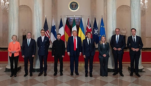 Сам╕т 18 серпня, що з╕брав у Б╕лому дом╕ безпрецедентну к╕льк╕сть св╕тових л╕дер╕в одночасно, мав складну структуру. Спочатку Дональд Трамп ╕ Володимир Зеленський провели двосторонню зустр╕ч ╕з делегац╕ями, п╕сля чого до них долучилася потужна ╓вропейська команда – президентка ╢вроком╕с╕╖ Урсула фон дер Ля╓н, генсек НАТО Марк Рютте, президент Франц╕╖ Еммануель Макрон, канцлер Н╕меччини Фр╕др╕х Мерц, прем'╓рка ╤тал╕╖ Джорджа Мелон╕, прем'╓р Велико╖ Британ╕╖ К╕р Стармер та президент Ф╕нлянд╕╖ Александер Стубб.