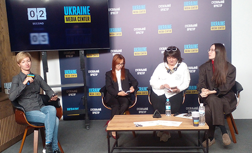 На презентац╕╖ (зл╕ва направо): Св╕тлана Чепуренко (модератор заходу), Тетяна Лучко, Валентина Потапова, Мар╕я Красненко