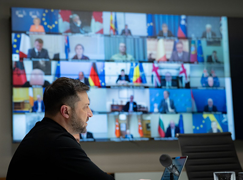 Президент Укра╖ни Володимир Зеленський узяв участь у зас╕данн╕ Коал╕ц╕╖ охочих, яке в╕дбулося у формат╕ в╕деозв’язку. На ньому сп╕вголовували Президент Франц╕╖ Емманюель Макрон, Прем’╓р-м╕н╕стр Велико╖ Британ╕╖ К╕р Стармер та Федеральний канцлер Н╕меччини Фр╕др╕х Мерц. Загалом на зас╕данн╕ були присутн╕ 40 учасник╕в, зокрема державний секретар США Марко Руб╕о.