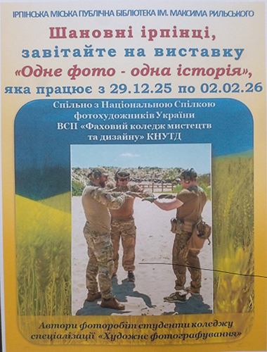 29 грудня в м╕ст╕ ╤рпен╕ на Ки╖вщин╕ в╕дбулася презентац╕я фотовиставки «Одне фото – одна ╕стор╕я. День з в╕йськовим ╕ в╕йськовою».
