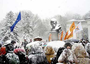 Напевне, загальний настрій, викликаний станом українства в Криму, передався вже й природі: 9 березня, на день народження Тараса Шевченка, пішов небачений в цю весняну пору снігопад. Та незважаючи на хурделицю, в парку ім. Т. Шевченка у Сімферополі представники Громадсько-політичної Ради демократичних організацій Криму провели мітинг на честь 191-річчя великого українського поета.
